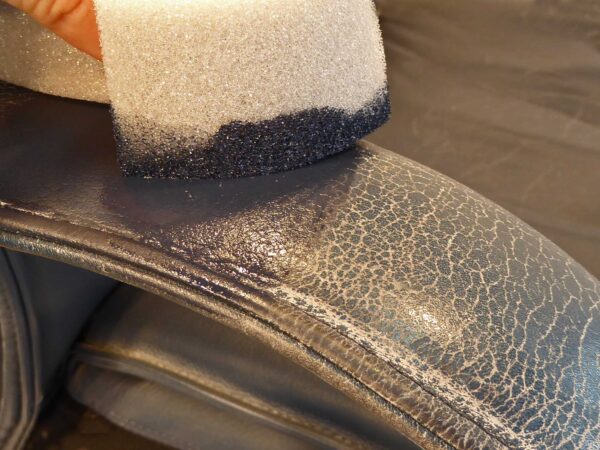 Barvno osvežilo (barvilo) za prekrivanje prask ter obnovitev obrabljenega ali obledelega usnja. Črna barva. Vsebina: 1000ml