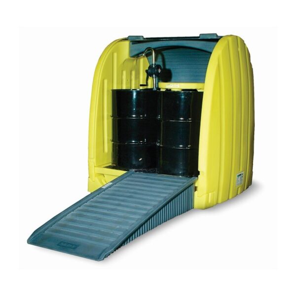 Skladišče je primerno za shranjevanje štirih sodov. Vgrajeno ima lastno lovilno paleto volumna 250L. Primeren je za notranjo in zunanjo uporabo. Možna manipulacija z viličarji. Zaradi svoje oblike, lahko hranimo sode skupaj z nameščenimi črpalkami. Rolo vrata, zavzamejo manj prostora. Vrata imajo vgrajeno ključavnico. Možnost naročila klančine (66E5038-BK) za lažje polnjenje in praznjenje skladišča.