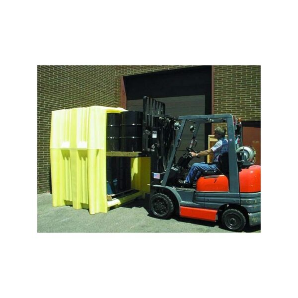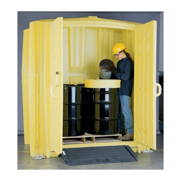 Primerno za shranjevanje štirih sodov, vgrajena lovilna posoda, enostaven dostop v notranjost,100% UV obstojnost. Omogoča manipulacija z viličarji, ima ključavnico za večjo varnost. Enostavno se ga da čistiti. Je korozijsko odporen ima zračnike za odzračevanje. Lahko ga pritrdimo na tla.