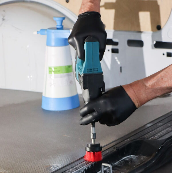 Set trdih krtač različnih dimenzij za vrtalni stroj, namenjenih za temeljito čiščenje gumijastih talnih preprog, pedal ter trdih površin z neprevlečeno plastiko. Vsebina: 3/1.