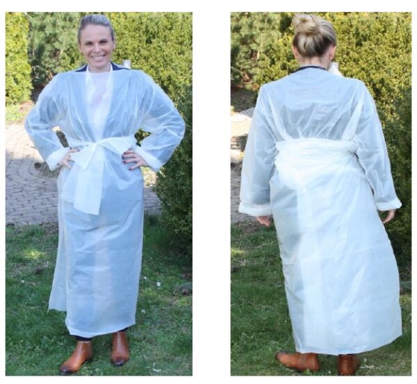 Univerzalna zaščitna obleka, z integriranim pasom. Tekočinam odbojna, iz nesterilnega belega filma. Antivirusna zaščita. Dimenzija 900x1840mm.