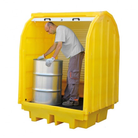 – Zaprta lovilna paleta za varno shranjevanje štirih 200L sodov