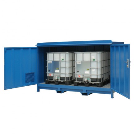 Skladišče za skladiščenje nevarnih snovi, dimenzije 2900 x 1400 x 2000 mm, kapaciteta 2 x IBC ali 8 x Sod 200lt.